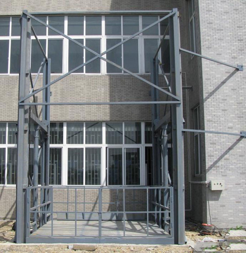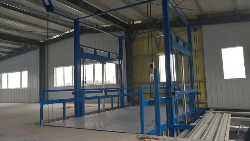 大噸位導軌式貨梯的主要功能是把貨物從地面把貨物垂直運輸到指定高度樓層,另一個功能是把貨物從地下室垂直升降運輸到地面或指定高度。控制方式是在地面和每一層都可以控制升降機的升降、停止。控制方式可以采用按鈕控制,也可采用遙控控制。