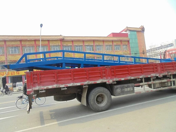 移動式液壓登車橋是與叉車配合使用的貨物裝卸輔助設備,可根據汽車車廂的高低調節高度,叉車可以直接通過本設備駛入車廂內部進行貨物的批量裝卸,僅需單人作業,即可實現貨物的快速裝卸。它使企業減少大量勞力,提高工作效率,獲取更大經濟效益